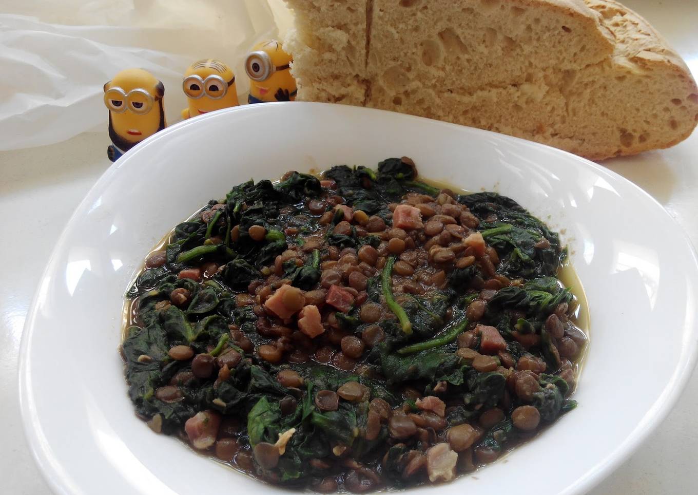 - Añadimos las acelgas troceadas y mezclamos bien con las lentejas y dejamos cocer un par de minutos.