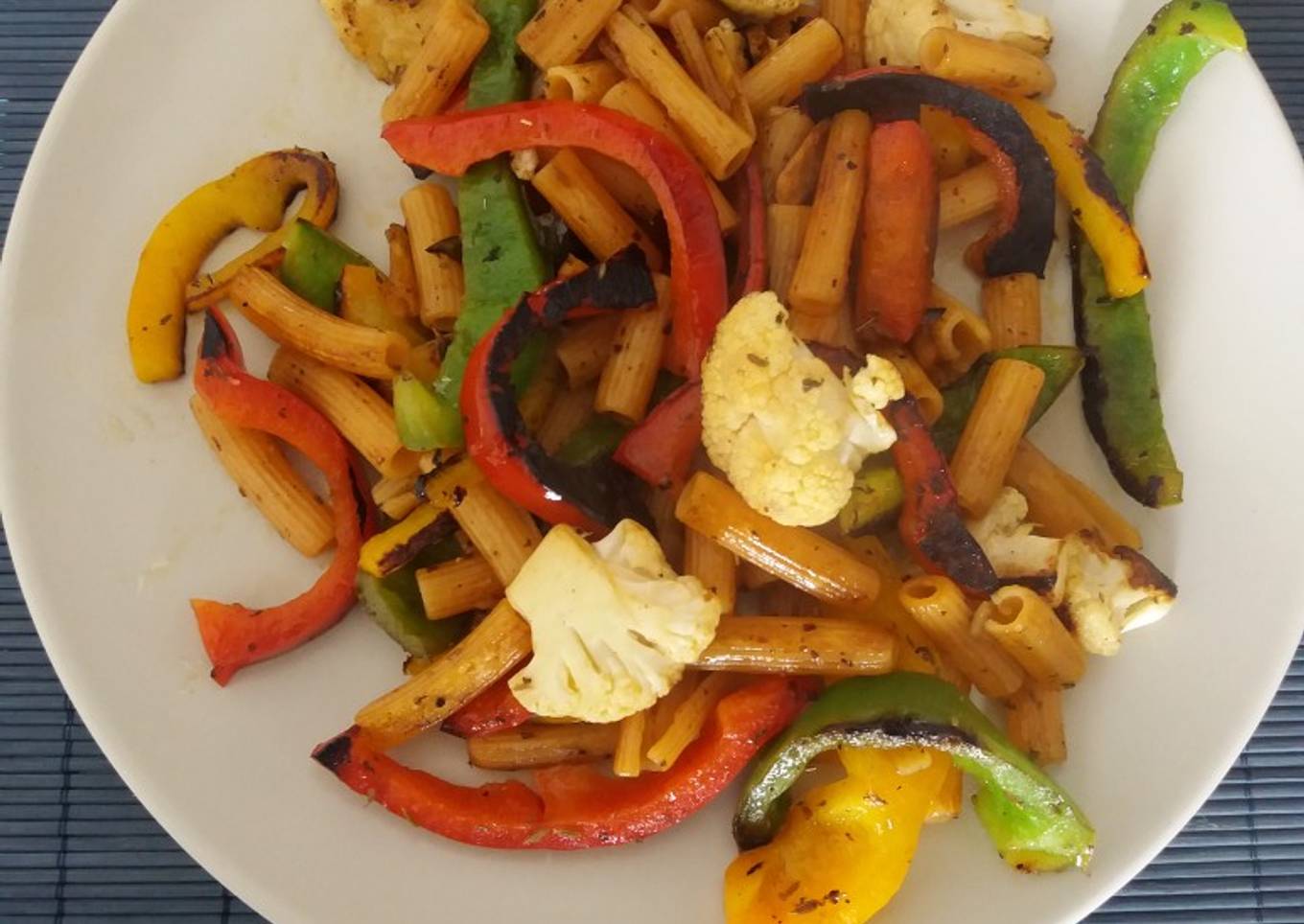 - Asar los pimientos y la coliflor