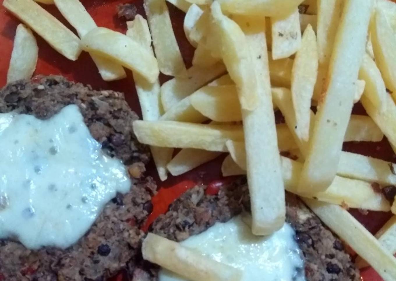 - Las cocinamos. En mi caso las hice en el hornito eléctrico pero también las podés hacer en la plancha dos minutos y medio aprox de cada lado. Cuando las das vuelta agregás el queso cremoso o cheddar hasta que se derrita. Podés acompañar con papas fritas, como hice yo, o con papas al horno o ensalada